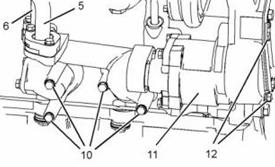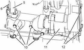 5. 將管組件(6)連接到發(fā)動(dòng)機(jī)機(jī)油泵(11)上并安裝螺栓(9)。