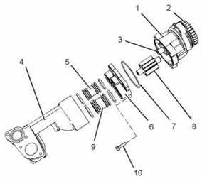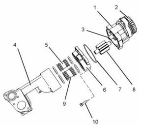 4. 將蓋(6)裝到發(fā)動(dòng)機(jī)機(jī)油泵(1)上并安裝螺栓(10)。