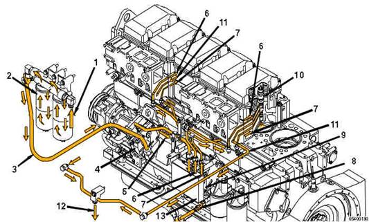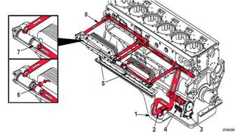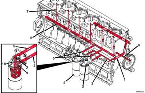 康明斯Cummins QSK23發(fā)動(dòng)機(jī)潤(rùn)滑系統(tǒng)流程