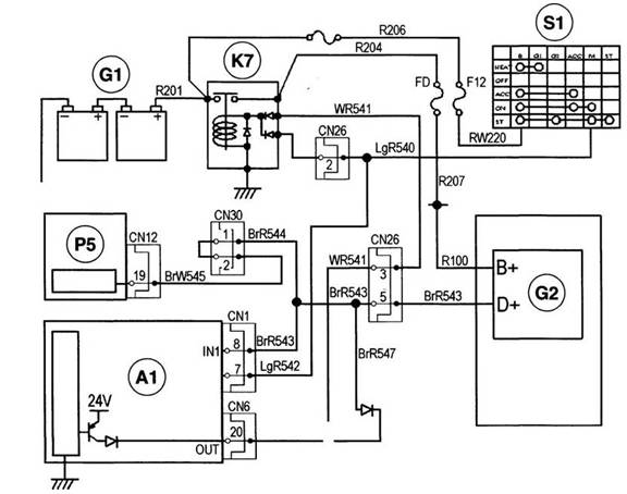 CN26 和繼電器間BrR543導(dǎo)線短路或發(fā)電機(jī)出現(xiàn)故障