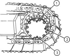 2.旋轉(zhuǎn)行走馬達(dá),直到螺塞①和螺塞③的連線轉(zhuǎn)到垂直位置上為止。