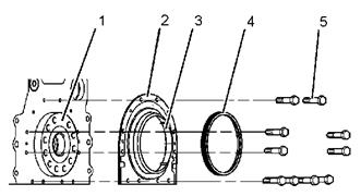 典型實例(1) 曲軸(2) 曲軸密封件(3) 塑料套筒(4) 對準工具(1) 將螺栓 1、2、3、4、5、6、7和10 按圖 43 所示擰緊至以下扭矩。 22 N•m (16 lb ft)拆卸對準工具。