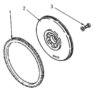 (1) 飛輪齒圈將飛輪齒圈加熱至以下溫度。 .. 250 °C (480 °F) 注: 不要使用氧炔焊炬加熱飛輪齒圈。