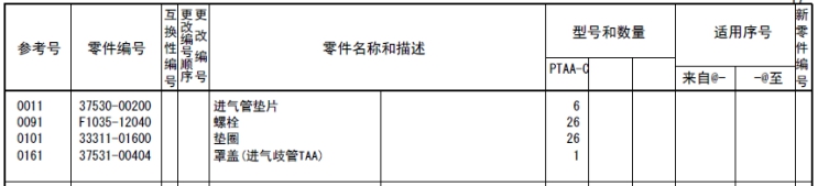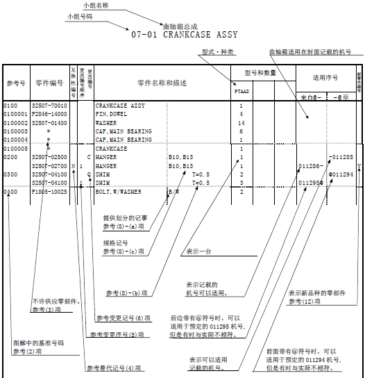 另外,適用機(jī)號(hào)上附有"@"標(biāo)記的計(jì)劃機(jī)號(hào)號(hào)碼,有時(shí)與實(shí)際的適用機(jī)號(hào),順序不同。FROM 欄為空欄時(shí),表示從目錄封面的記載機(jī)號(hào)開始適用。