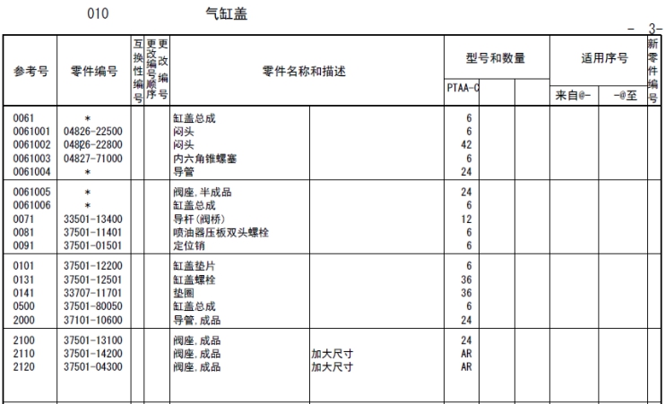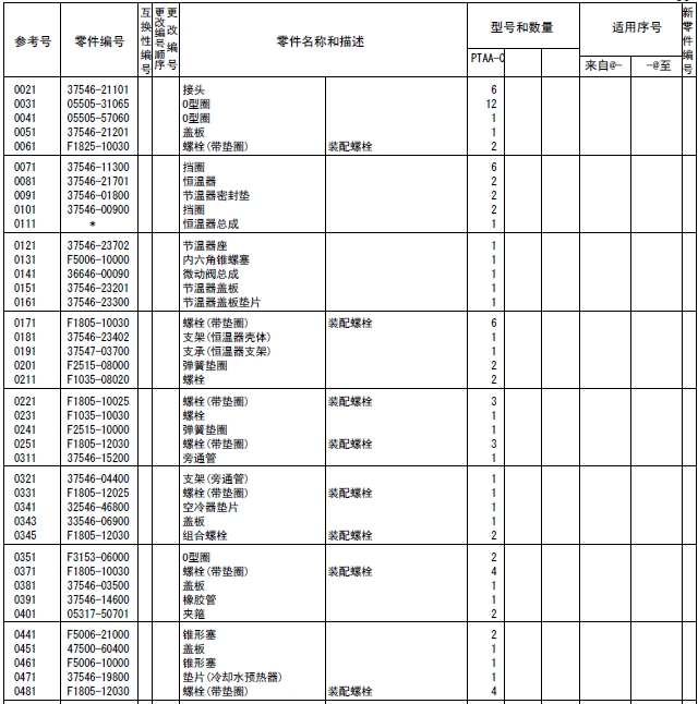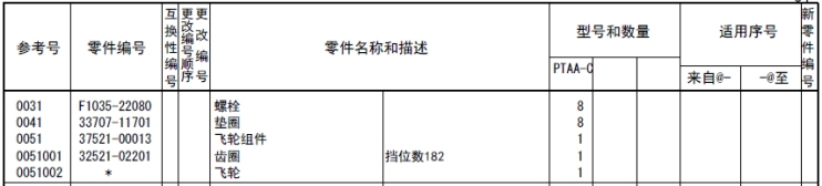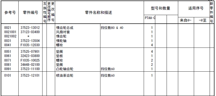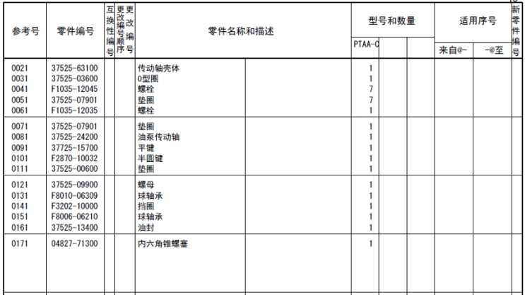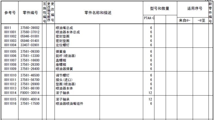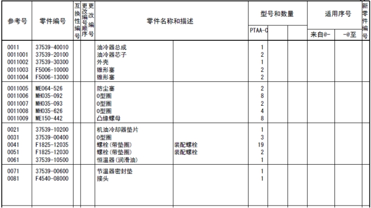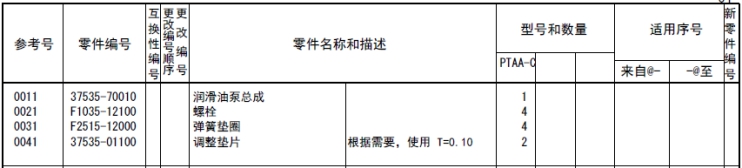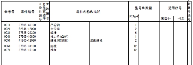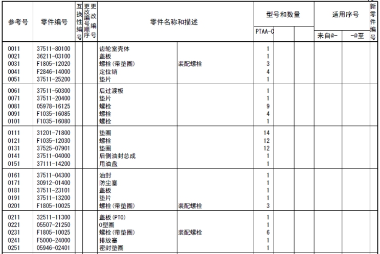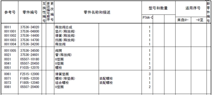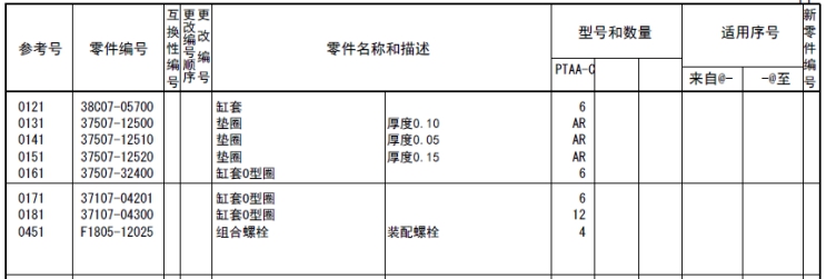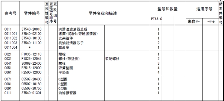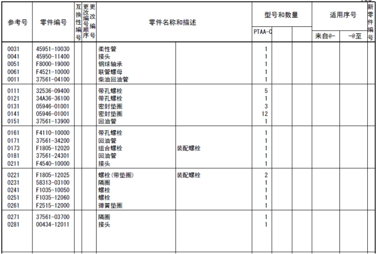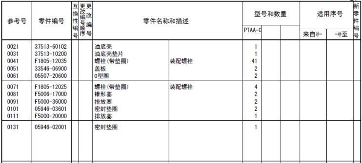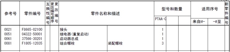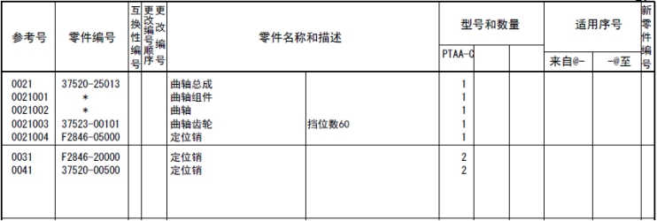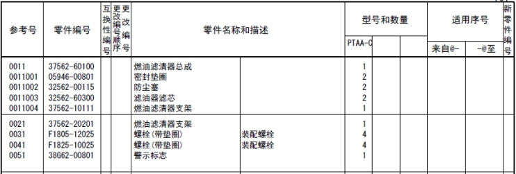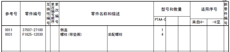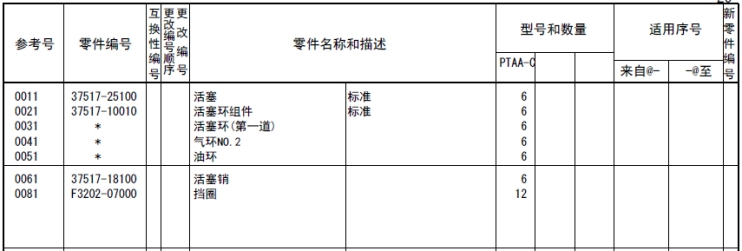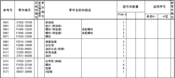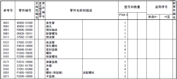 該零部件,在FROM 欄里表示從幾號(hào)開始能夠適用、在UPTO 欄里表示到幾號(hào)為止能夠適用。