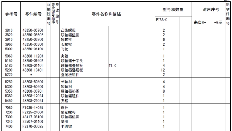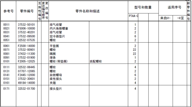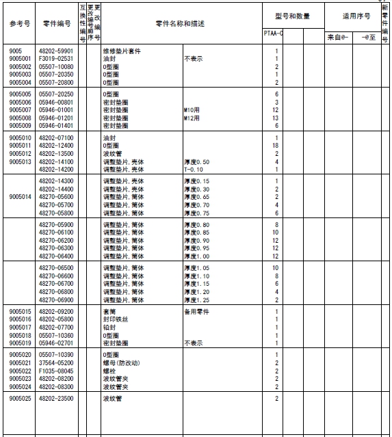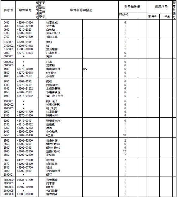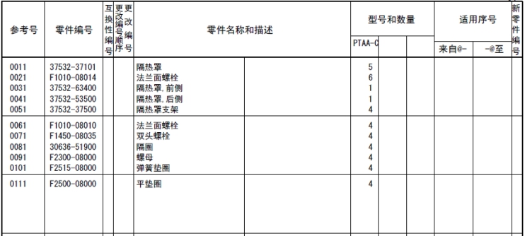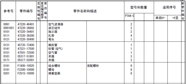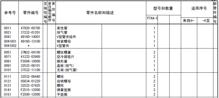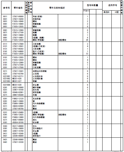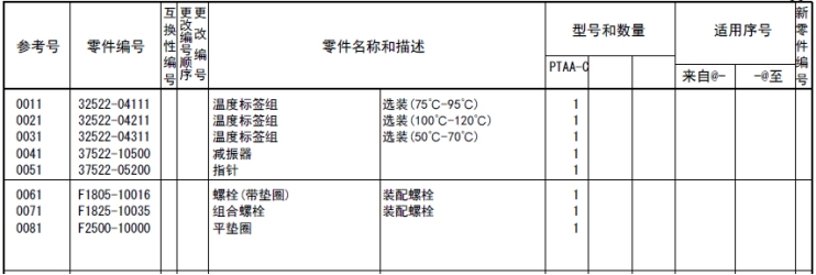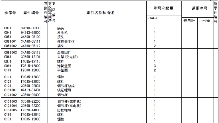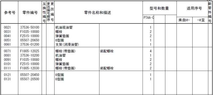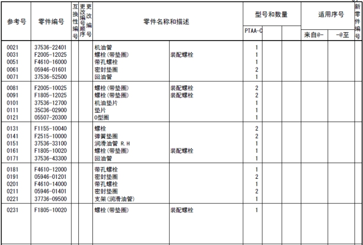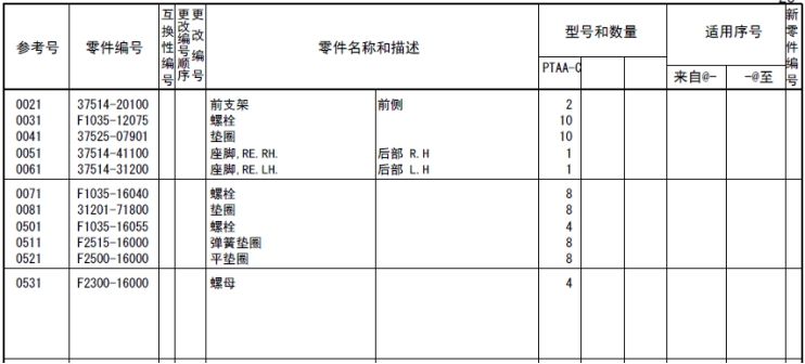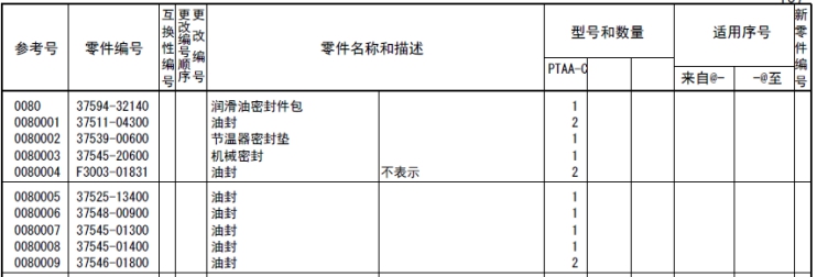 記載著可以供應(yīng)的原廠純正零部件的號(hào)碼。