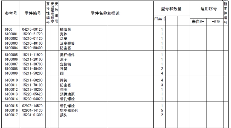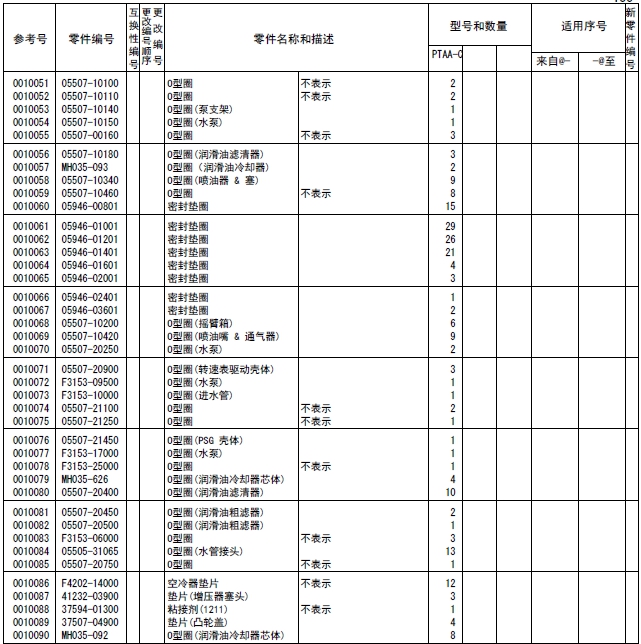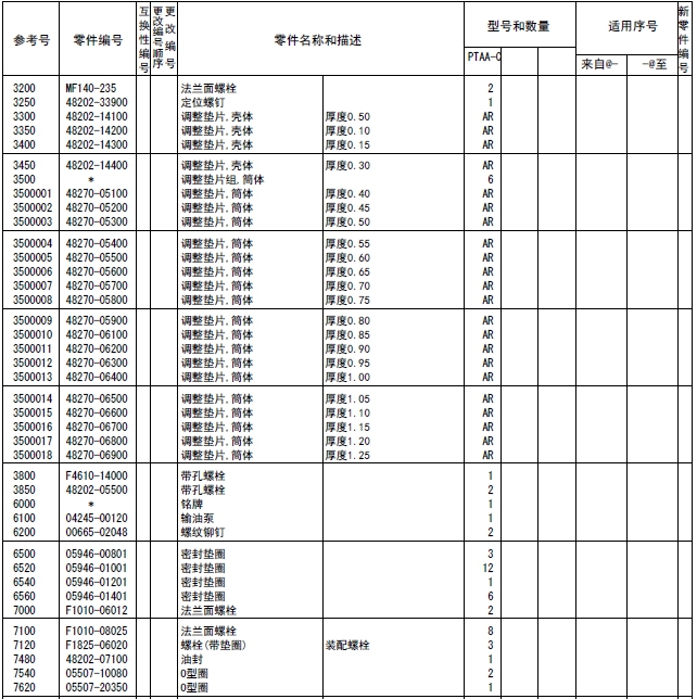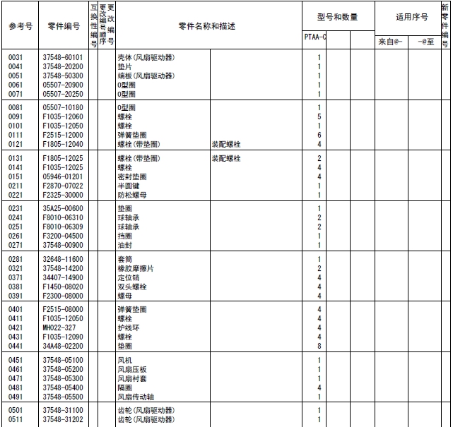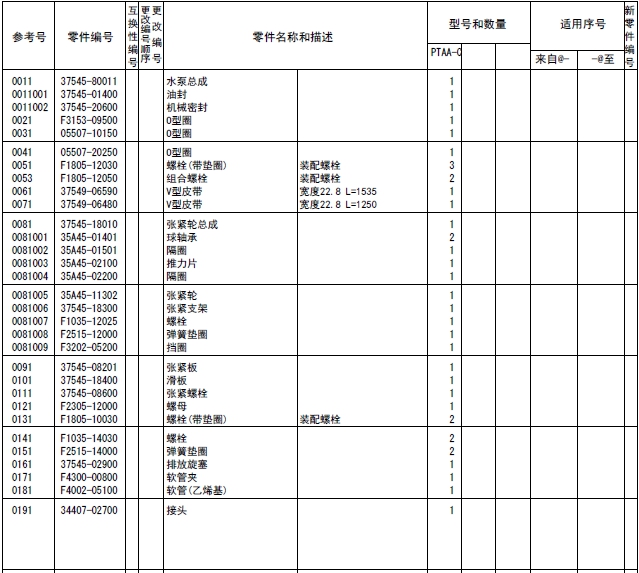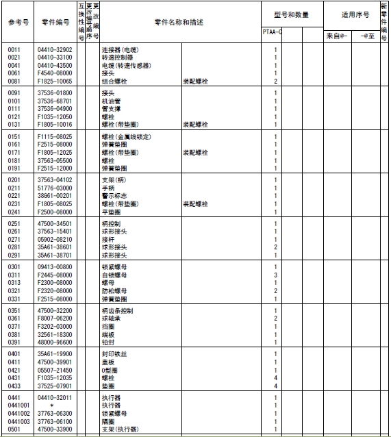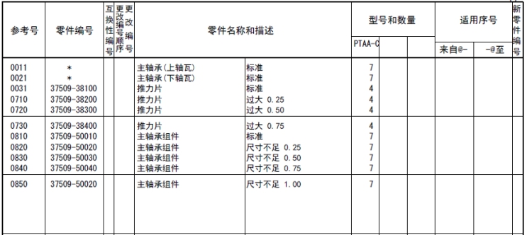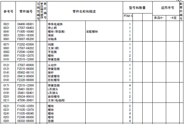 注釋:對于上述的形式名稱、型式數(shù)量和機(jī)號(hào)等,有時(shí)也引用在其他的目錄例子中,所以在此目錄中替換之后,作為參考即可。