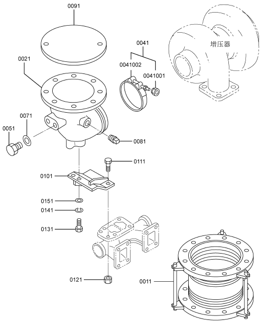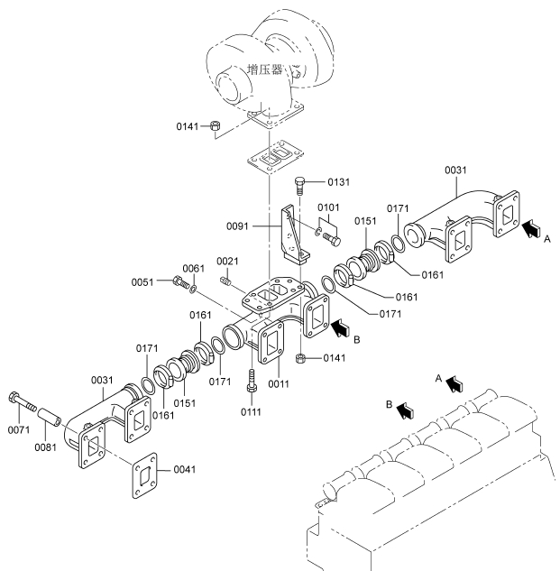 三菱(MITSUBISHI)S6R2-PTAA柴油發(fā)動(dòng)機(jī)排氣系統(tǒng)(B)