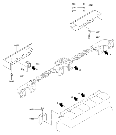 320 三菱(MITSUBISHI)S6R2-PTAA柴油發(fā)動(dòng)機(jī)排氣系統(tǒng)(B)