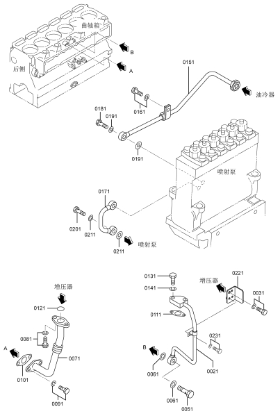 三菱(MITSUBISHI)S6R2-PTAA柴油發(fā)動(dòng)機(jī)濾油器管路