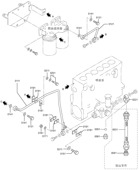 三菱(MITSUBISHI)S6R2-PTAA柴油發(fā)動(dòng)機(jī)燃油濾清器管路
