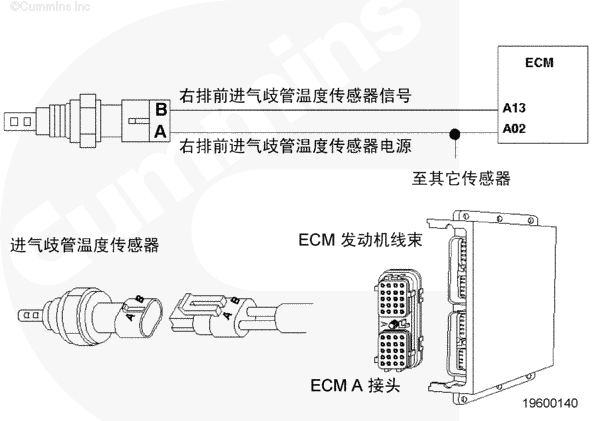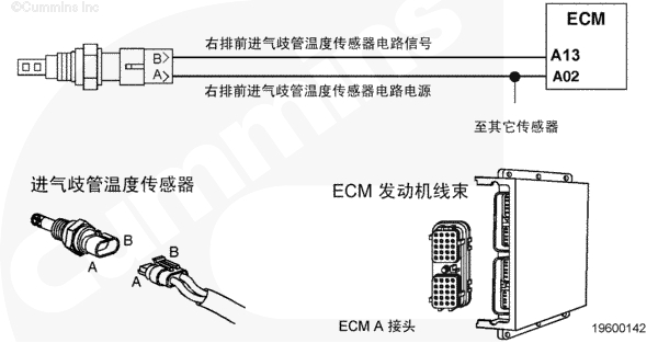 康明斯QSK78發(fā)動機(jī)右排前進(jìn)氣歧管溫度傳感器電路 |