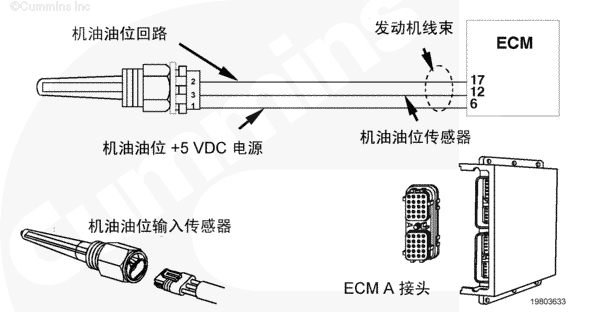 補(bǔ)充油箱低機(jī)油油位傳感器監(jiān)測補(bǔ)充油箱的機(jī)油油位,在機(jī)油降至規(guī)定油位以下時向 CM500 ECM 發(fā)送報告。