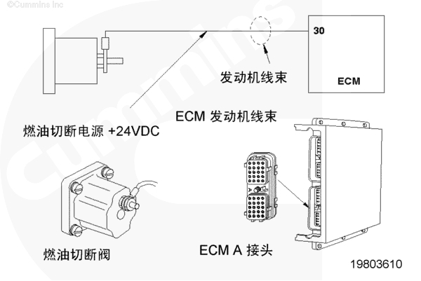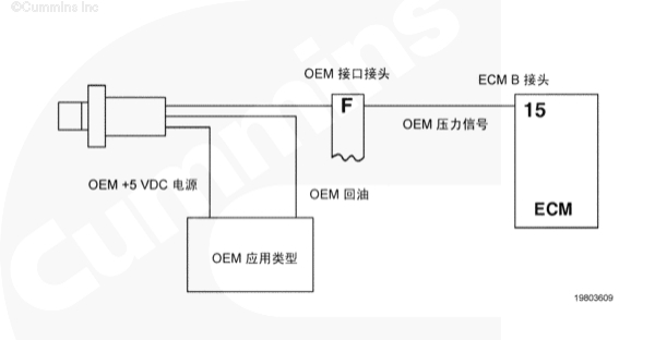 油門踏板通過 OEM 線束和 OEM 接口線束向 CM500 ECM 提供駕駛員油門指令。CM500 ECM 利用此信號來確定燃油油軌執(zhí)行器閥的供油指令。