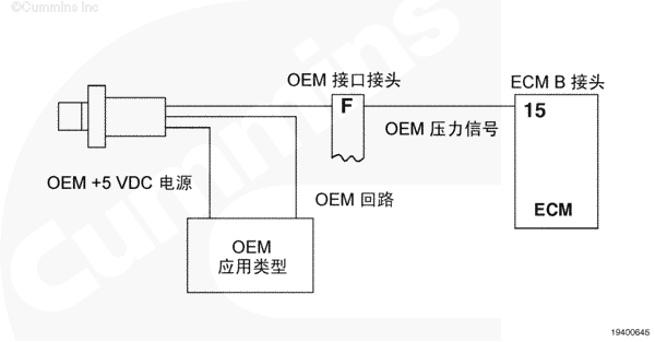 頻率油門通過 OEM 線束與 OEM 接口線束將駕駛員的油門指令提供給 CM500 ECM。CM500 ECM 利用此信號來確定供油指令。