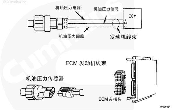 CM500 ECM 利用機(jī)油壓力傳感器 (OPS) 監(jiān)測機(jī)油壓力。CM500 ECM 監(jiān)測信號觸針上的電壓并將其轉(zhuǎn)換成壓力值。CM500 ECM 將機(jī)油壓力值用于康明斯QSK78發(fā)動機(jī)保護(hù)系統(tǒng)。