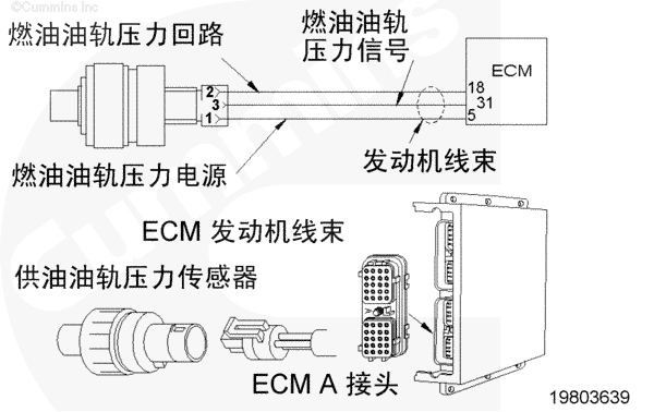 燃油油軌壓力傳感器通過康明斯QSK78發(fā)動機(jī)線束向 CM500 ECM 提供燃油油軌壓力傳感器信號。CM500 ECM 利用燃油油軌壓力傳感器信號監(jiān)測從控制閥體輸送到噴油器計量油腔的油軌燃油壓力。