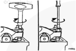 轉(zhuǎn)動(dòng)鎖緊螺母直到它們與搖臂接觸。比較各調(diào)節(jié)螺釘高出鎖緊螺母的高度。