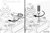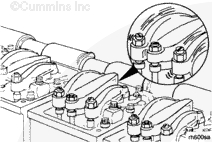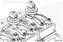 “行駛法”步驟只能用于設(shè)定固定時(shí)間 PT™(D 型)噴油器。拆下?lián)u臂室蓋以及所有相關(guān)部件。