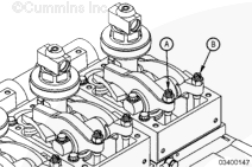 使用飛輪上的分度標(biāo)記時(shí),標(biāo)記必須以“A”開頭,否則氣門和噴油器將不能正確調(diào)整并可能造成推桿損壞。 |