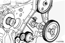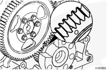 · 安裝減振器/曲軸轉(zhuǎn)速指示環(huán)。如果配備粘性減振器,采用以下步驟。參考第 1 節(jié)中的步驟 001-052。