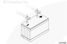 蓄電池可能會有易爆性氣體逸出。為了盡可能避免人身傷害,在維護(hù)蓄電池前,必須保持發(fā)動機(jī)艙通風(fēng)良好。為避免產(chǎn)生電弧,應(yīng)首先拆下負(fù)極 (-) 蓄電池電纜,并最后連接負(fù)極 (-) 蓄電池電纜。 |