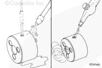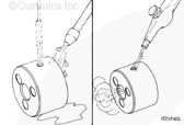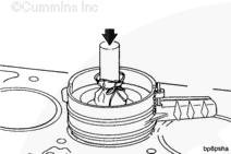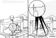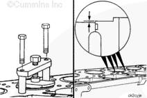 重新安裝缸套。檢查缸套的突出量。如果缸套突出量仍然 不符合技術(shù)規(guī)范,將缸套孔切下一些以適合墊片。 參考《補(bǔ)救維修手冊(cè)》(公告號(hào) 3810310)中的正確步驟。