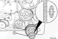使用了 3 種惰輪總成:水泵惰輪 (1),凸輪軸惰輪 (2),液壓泵惰輪 (3)。