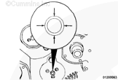 使用深度規(guī)(零件號(hào) 3823495)在四個(gè)相隔 90 度的點(diǎn)測(cè)量缸套突出量。