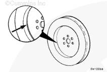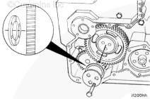 注: 由于凸輪軸惰輪的輪齒多于凸輪軸齒輪,凸輪軸惰輪的正時(shí)標(biāo)記將 在發(fā)動(dòng)機(jī)每轉(zhuǎn)一圈時(shí)不與曲軸、凸輪軸和附件驅(qū)動(dòng)齒輪的正時(shí)標(biāo)記對(duì)正。