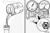 向發(fā)動(dòng)機(jī)加注機(jī)油。參考步驟 007-025。運(yùn)轉(zhuǎn)發(fā)動(dòng)機(jī),檢查有無(wú)泄漏。
