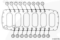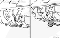 將缸體加強(qiáng)板正確定位在油底殼安裝法蘭的更新位置上。