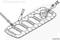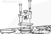 不要使用沖擊扳手?jǐn)Q緊缸套壓板螺釘。扭矩過(guò)大會(huì)造成缸套安裝工具損壞。