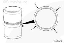 如果缸套孔失圓度超過(guò) 0.10 mm [0.004 in]:拆下缸套以便能夠測(cè)量缸體的缸套孔。
