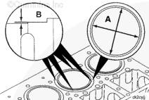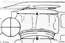 再次檢查缸套孔 (A) 和突出量 (B)。如果需要,更換缸套 不符合技術(shù)規(guī)范。