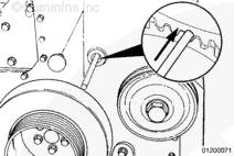 M 系列發(fā)動(dòng)機(jī)不能起動(dòng)或起動(dòng)困難的原因可能是發(fā)動(dòng)機(jī)位置傳感器與凸輪軸齒輪后部的傳感器之間的間隙過(guò)大。在這種情況下,發(fā)動(dòng)機(jī)位置傳感器無(wú)法將必需的信號(hào)發(fā)送至電子控制模塊。間隙過(guò)大可能是由于凸輪軸止推軸承損壞造成的。無(wú)須拆卸前齒輪室蓋,使用此步驟可測(cè)量安裝在底盤上的M系列發(fā)動(dòng)機(jī)的凸輪軸軸向間隙。如果軸向間隙不符合給定的技術(shù)規(guī)范,必須拆下齒輪室蓋并維修造成軸向間隙過(guò)大的起因。