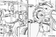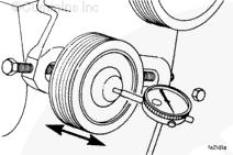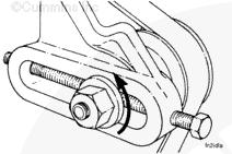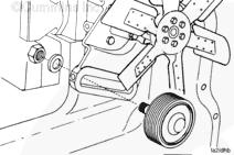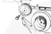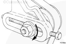 擰緊風(fēng)扇惰輪皮帶輪軸的鎖緊螺母。扭矩值: 190 n.m [140 ft-lb]擰緊鎖緊螺母后,再次檢查皮帶張力。
