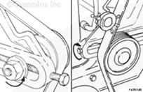 逆時(shí)針轉(zhuǎn)動調(diào)節(jié)螺栓,以釋放皮帶張力。盡可能將風(fēng)扇惰輪皮帶輪靠近風(fēng)扇皮帶輪中心。拆卸皮帶時(shí)不要用力過度。