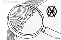 檢查康明斯M11柴油發(fā)動機(jī)冷卻系統(tǒng)冷卻風(fēng)扇驅(qū)動皮帶能否繼續(xù)使用