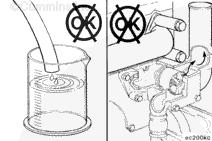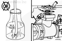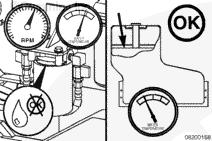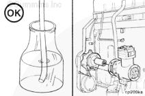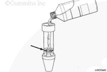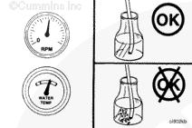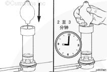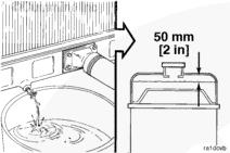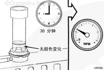 讓發(fā)動機(jī)以額定轉(zhuǎn)速運(yùn)轉(zhuǎn)1分鐘。關(guān)閉發(fā)動機(jī),測量容器中收集到的冷卻液量。收集的冷卻液的容量不得大于 100 cc [3.3 fl oz]。