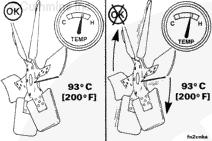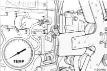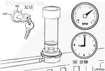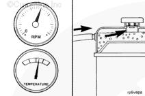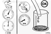 在底盤上完成以下的測試以檢測節(jié)溫器的開啟溫度。起動發(fā)動機(jī)并監(jiān)測水溫表和容器。