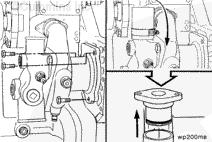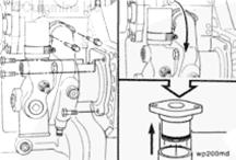 在油封防塵密封件的內(nèi)側(cè)涂抹一薄層機(jī)油或防凍液。將防塵密封件安裝到軸上,外表面較大的一面朝向發(fā)動機(jī)。用手將防塵密封件推到軸上,直到整個(gè)防塵密封件與油封托架完全接觸。