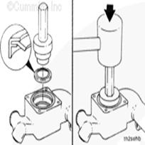 在閥門上安裝新 O 形圈。用一層防粘結(jié)復(fù)合劑潤滑 O 形圈。將閥門安裝在濾清器座上。擰緊螺栓。扭矩值: 10 n.m [90 in-lb]