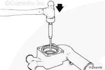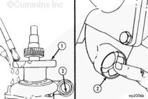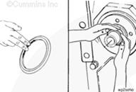 安裝水泵蓋。安裝一個(gè)新的 O 形密封圈。扭矩值: 47 n.m [35 ft-lb]在水泵安裝法蘭上安裝新的 O 形圈。