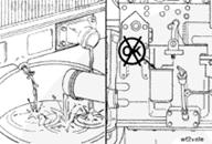 不要用力打開或關(guān)閉切斷閥。如果閥不能轉(zhuǎn)動自如,參考步驟 008-007。拆卸冷卻系統(tǒng)壓力蓋。