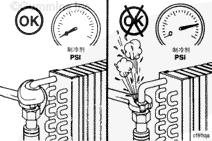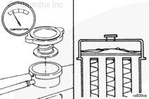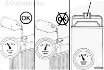 在發(fā)動機(jī)冷卻水溫度低于 50°C [120°F] 時(shí)完成這項(xiàng)測試。熱蒸汽可能會造成嚴(yán)重的人身傷害。