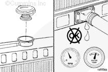 如果收集的冷卻液超過 100 cc [3.3 fl oz],表明節(jié)溫器或節(jié)溫器密封發(fā)生泄漏,必須進(jìn)行更換。參考步驟 008-016 來更換節(jié)溫器密封件。