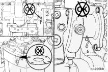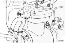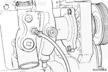 在水泵輸水管接頭上安裝新的密封墊。安裝并擰緊輸水管接頭螺栓。扭矩值: 25 n.m [18 ft-lb]
