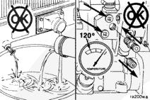 冷卻液開始流動時(shí)關(guān)閉發(fā)動機(jī)。如果在初始開啟溫度范圍內(nèi),冷卻液沒有開始向容器中流動,必須更換節(jié)溫器。