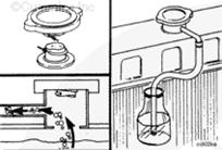 在節(jié)溫器殼出口上安裝相同尺寸的軟管,該軟管應(yīng)該具有足夠的長度,能夠連接到一個(gè)遠(yuǎn)處的并且干燥的容器,以收集冷卻液。